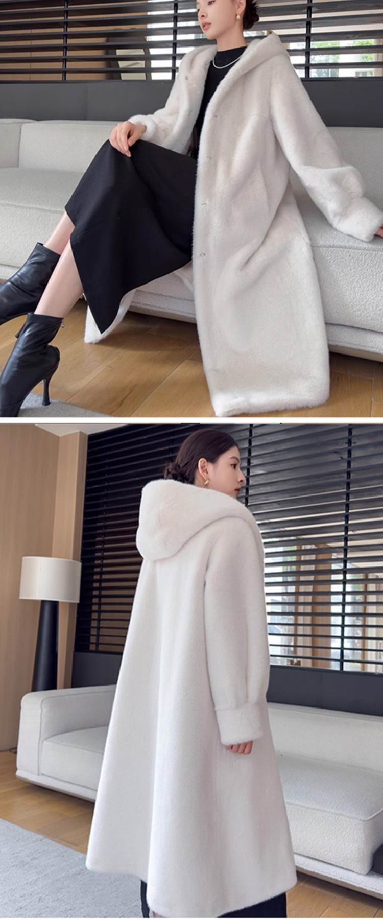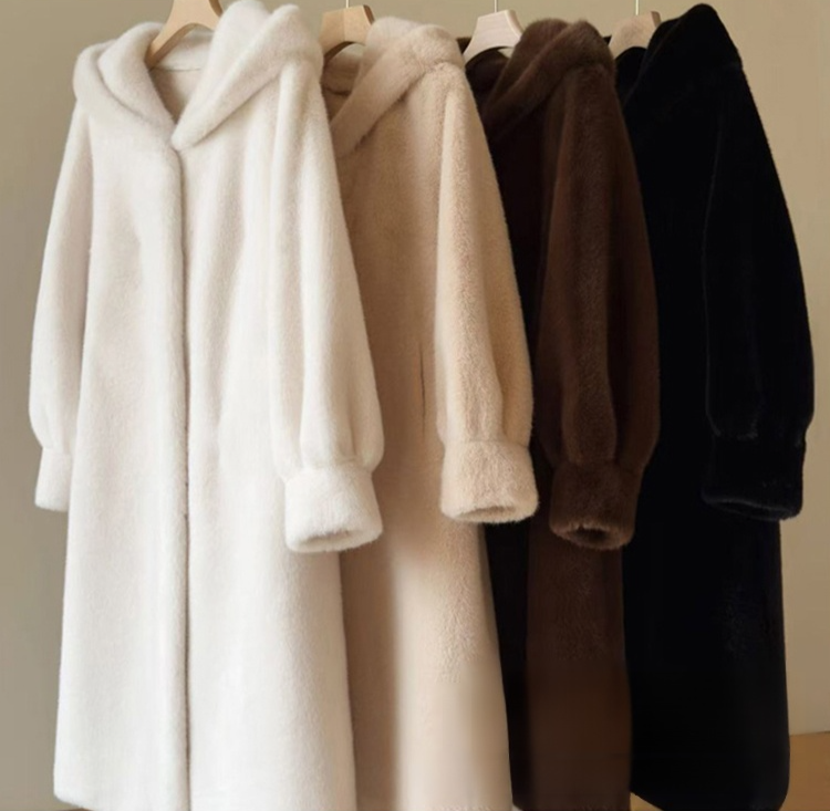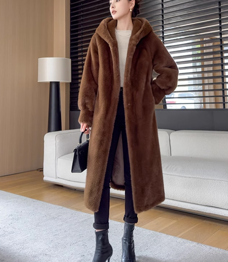 긴 후드 밍크 코트