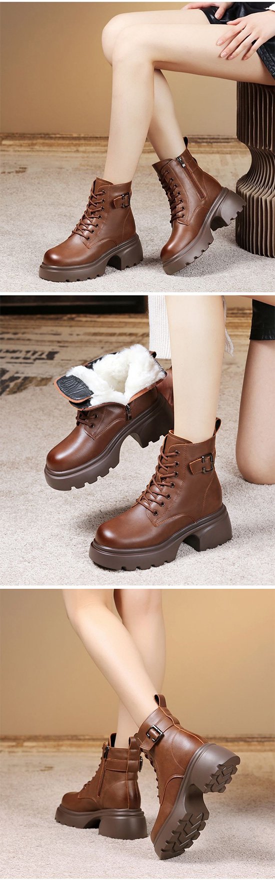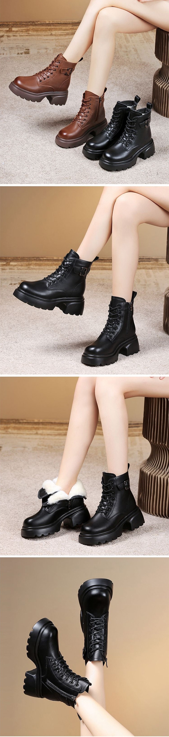 여성용 플랫폼 플리스 안감 영국 스타일 마틴 부츠